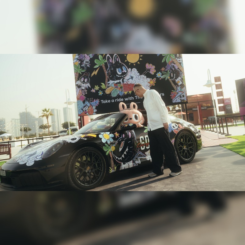 While the limited figure represents a King Mon in a historic miniature Targa, a life-size Labubu figure takes a seat in the Art Car – a 911 Targa (Type 992). Dressed in a Porsche T-shirt, this is another attraction of the Icons of Porsche event. Inspired by the Dubai venue, Kasing Lung has created a Labubu-style design for the sports car.